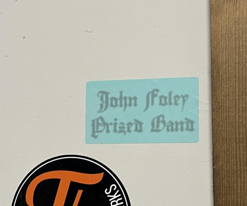 If you would like to place a wonderful John Foley Prized Band sticker on an appropriate surface somewhere, please get in touch! in person or at a gig or anywhere. there is a sticker for you ! We love you dearly!